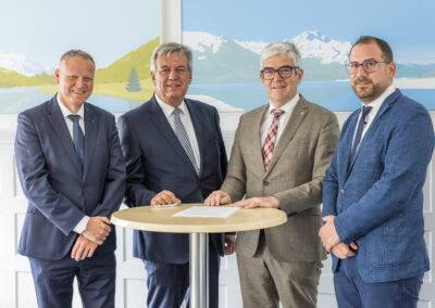 Stefan Eisenring, Direktor ibW, Jürg Michel, Präsident Trägerverein ibW,, Regierungsrat Jon Domenic Parolini, Vorsteher EKUD, Curdin Tuor, Leiter Amt für Berufsbildung